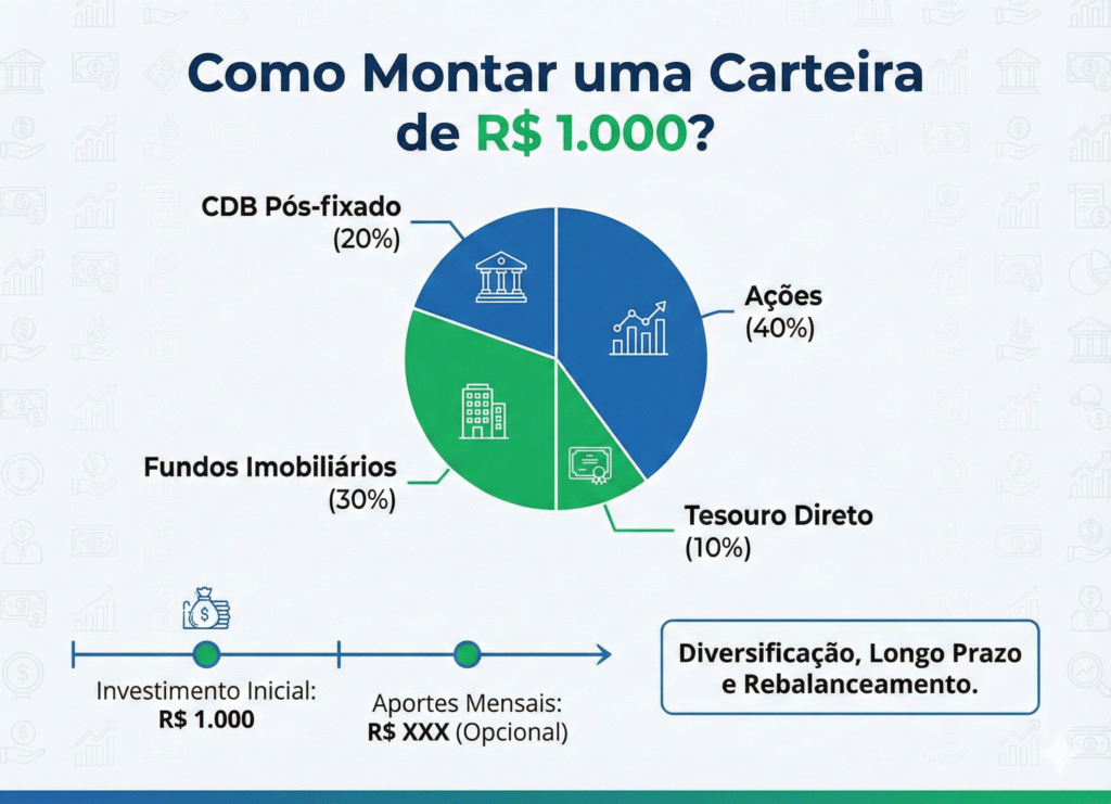 Palavras-chave: carteira de mil reais, investimentos para iniciantes, renda fixa, diversificação, pequeno investidor.